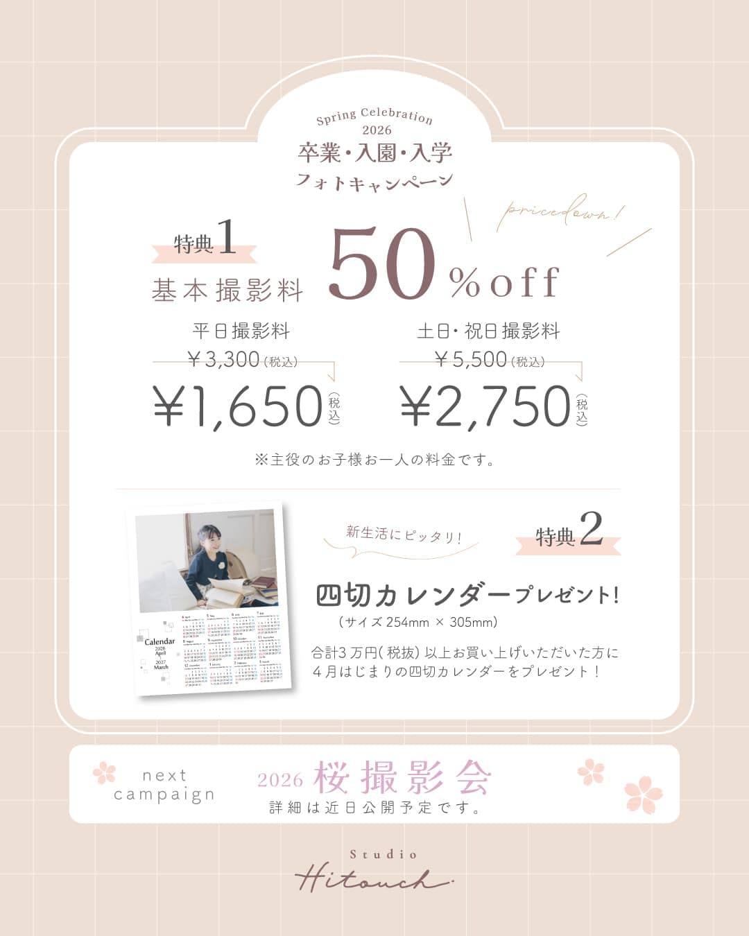 ※撮影日が2026年4月15日までのお客様が対象となります。(ご予約日ではなく、実際の撮影日が基準となります)